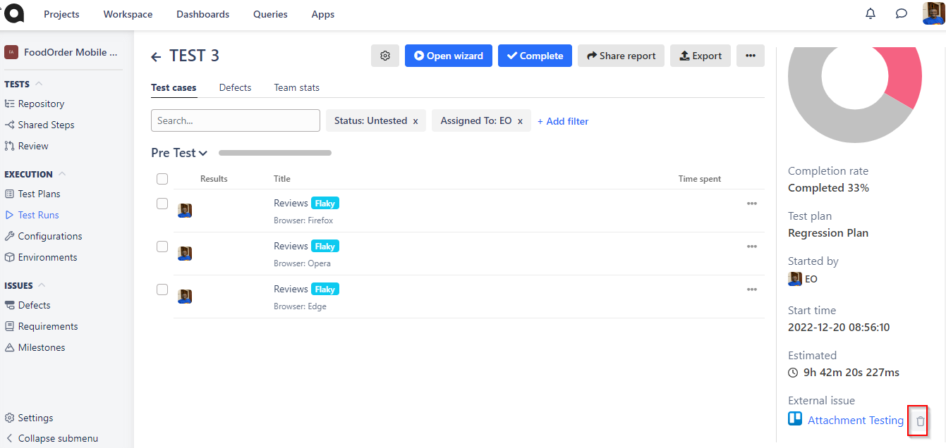 Test runs can be linked to a Trello issue, from the Run Dashboard.