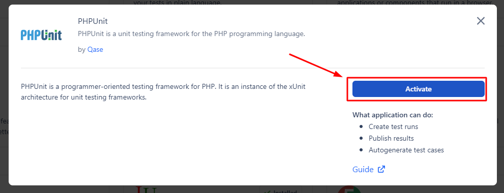 4. Click "Guide" to access the instructionarrow-up-right on adding the PHPUnit reporter to your automation flow: