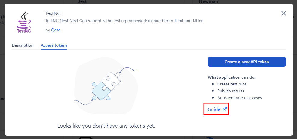 Click "Guide" to access the instruction on adding the TestNG reporter to your automation flow: