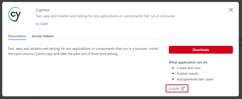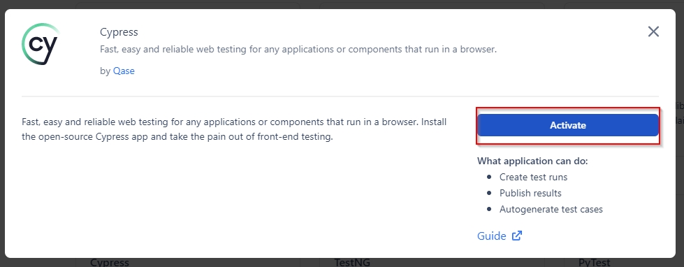 An explanation of Cypress and how to install the Cypress app in Qase.